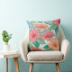 Pop de flores de hibisco de cor brilhante contra a folhagem em tons verdes neste travesseiro decorativo com padrão de folhagem tropical.