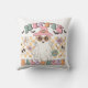 O travesseiro decorativo bonito, colorido e divertido Hippie Halloween apresenta um fantasma hippie com chapéu de bruxa rosa, texto que lê Hippie Halloween, e algumas flores e pequenos morcegos e crânios em lavanda, melão, aqua e rosa!