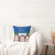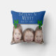 Holly Berry Tree Plant Blue Bright Feliz Travesseiro decorativo de Natal. Adicione sua foto e seu nome.