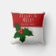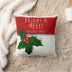 Holly Berry Tree Plant Red Feliz Travesseiro decorativo de Natal. Travesseiro vermelho e branco moderno com planta de baga oca. Adicione seu nome e texto no travesseiro.