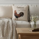 Farmhouse style pillow celebrating family and home life. Lovely cream colored pillow is decorated with a vintage style rooster illustration in brown and warm reddish and rust tones. Personalized with a family name and a warm saying that you can edit and adjust to your own family values or thoughts or completely remove.