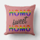 Travesseiro decorativo doce e engraçado, com texto decorativo do "HOMO doce HOMO", uma palavra por a linha. Mostra primeiro e último as letras principais corajosas enchidas com o símbolo alegre, a bandeira do arco-íris. O "doce centrado" está no preto desvanecido e é dobrado leve.