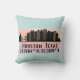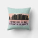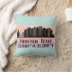 Na moda travesseiro decorativo apresenta silhueta de linha do horizonte de Houston TX com coordenadas do mapa em um fundo de escala de cor da água,
