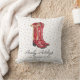 Estes travesseiros decorativos de natal apresentam um retrato de aquarela de um par de botas vermelhas de cowgirl com a legenda "feriados nobres" sobre um fundo bolinhas.