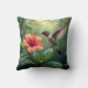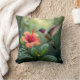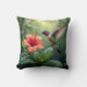 Um beija-flor vibrante paira perto de uma flor de hibisco florescente, suas asas são um borrão de movimento.