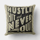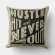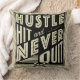 Baseball Hustle, Bata E Nunca Sai De Cushion. O texto diz: Hustle, Hit And Nunca Sair, com o ícone cruzado de tacos de beisebol e softball.
