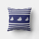 Iates modernos elegantes são silhuetas em Travesseiro decorativo listrado azul e branco.