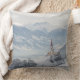 Travesseiro decorativo com a igreja de St. Pankraz em uma paisagem alpina na neve cercada por nuvens e por névoa em um monte com uma vista sobre o vale de Zillertal com as montanhas dos cumes no fundo em Fügen, Áustria no inverno. Grande decoração!