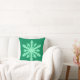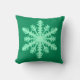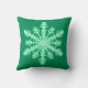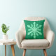 Um padrão delicado, de flocos de neve herdados sobre um fundo sólido com uma textura tecida Ikat estriada - floco de neve verde de menta pastel sobre um travesseiro quadrado verde-pinheiro/verde-escuro