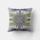Arte fractal abstrato simétrica que me lembra ilusões óticas. Este travesseiro decorativo único apresenta círculos e ondas em branco, azul e caqui.