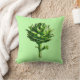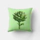 Travesseiro decorativo numa ilustração botânica vintage de uma alcachofra-globo, melhorada digitalmente e colorida, num fundo verde-aipo-claro