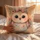 Almofada Ilustração de Coruja Kawaii Boho