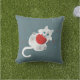 Cushion de dois lados - Ilustração de um gato branco brincando com uma bola vermelha
