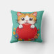 Uma encantadora ilustração com um gato laranja segurando uma bola vermelha. Cercado por flores vibrantes em um fundo azul-turquesa brilhante, evoca diversão, calor e alegria, tornando-se um design encantador para qualquer projeto.
