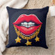 Ilustração vívida com lábios vermelhos brilhantes adornados com estrelas amarelas em um fundo azul, evocando uma sensação de estética moderna, artística e ousada.