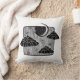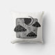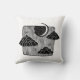 Travesseiro decorativo preto e branco com ilustração gráfica noturna mágica. Meia lua, nuvens e estrelas desenhando tinta.