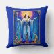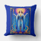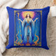Travesseiro no cartão de tarô "A Rainha das Terras". De pé, na região, em vestes azuis, radiantes sob um halo ouro, ela segura uma varinha, simbolizando poder e criatividade. Cercada por galhos e estrelas ferozes, ela exalta confiança, calor e força espiritual