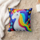 Decorative pillow with colorful unicorn image.
