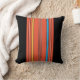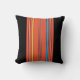 Um travesseiro inspirado retroativamente com faixas de laranja, pretas com toques de azul, amarelo e branco
