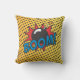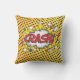 A banda desenhada do pop art do divertimento inspirou o travesseiro com fundo amarelo e os pontos pretos. Um lado é uma bomba que diga que o crescimento e o outro lado são uma explosão de nuvem com o impacto da palavra! Ilustração tirada mão por McBooboo