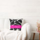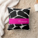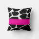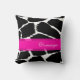 Um travesseiro de impressão monocromática ousado em preto e branco contrastante com um flash de rosa quente. Este padrão original de Sarah Trett é baseado no padrão encontrado em uma girafa. Pareceria excelente em um quarto adolescente. Personalize com o nome de sua escolha. Atualmente, lê Dominique.