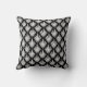 Bonito travesseiro do estilo de Deco de Arte em preto e branco. Almofada de na moda com um padrão monocromático de Deco de Arte de ventoinhas com penas.