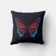 Almofada de lançamento de design de bordado com linda borboleta em cores vermelha, azul e roxa em fundo preto torna-se uma decoração incrível para o lar. Presente perfeito para aniversário, casamento ou festa de inauguração. Um ótimo presente para quem ama bordado e natureza.