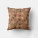 Travesseiro decorativo em um padrão moderno do século médio de sete pontos, estrelas traçadas em tons de marrom, esticado, bege e creme, sobre um fundo médio marrom do café