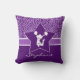 Travesseiro decorativo roxo vibrante do impressão da chita para o elogio ou o pom. Tem um fundo impressionante do impressão da chita com uma estrela roxa grande completa com uma silhueta do cheerleader ou da menina do pom. Adicione seu próprio texto antes de pedir!