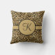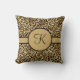 Travesseiro decorativo de Impressão Leopardo Preto e Dourado Monograma.