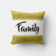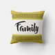 Você vai adorar este travesseiro decorativo fofo! Fundo amarelo/dourado com padrão preto divertido no topo e no fundo. White está no centro com a palavra Família em uma tipografia divertida e bonito. Diversão e na moda!