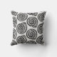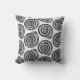 Travesseiro decorativo em um padrão de impressão de bloco, baseado em uma concha espiral, em preto sobre um fundo branco