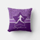 Travesseiro decorativo roxo selvagem do futebol com um impressão roxo da chita no fundo. Uma silhueta branca do jogador de futebol da menina está em uma estrela roxa escura na parte dianteira. Adicione seus próprios nome e número antes que você peça!
