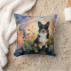 This image features a black-headed tri-colored corgi amidst a vibrant field of flowers. The artwork is rendered in a fluid alcohol ink style, creating a unique visual effect.