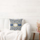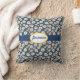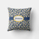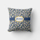 Margaridas bonitas, pequenas e brancas com centros amarelos brilhantes sobre fundo azul criam um travesseiro decorativo simples e doce. Personalize com seu nome em um oval de borda amarela segurado por uma banda azul escura.