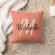Travesseiro decorativo com fundo laranja de salmão e monograma personalizado branco primeiro nome e primeiro nome.