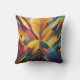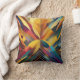 Um conjunto vibrante de formas ousadas e geométricas converge no centro, formando uma composição simétrica e colorida. A peça usa uma variedade de matizes, que vão de amarelos quentes e laranjas a legal blues e roxas.