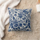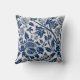 Intricate blue floral pattern on a light background, featuring stylized blooms and curling leaves, evoking a vintage, elegant feel.