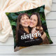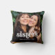 Este travesseiro simples e na moda apresenta duas de suas fotos pessoais, juntamente com a palavra "irmãs" na tipografia moderna boho branca.