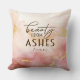 O travesseiro decorativo com a escritura de aspas inspiradoras retrata um plano de fundo cor-de-rosa e dourado maravilhosamente desenhado com textura e estilo refinados. Apresenta uma parte encorajadora da Bíblia Verse Isaiah 61 3, "Beauty from Ashes."