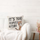 This soft throw pillow features a moody cat and the painfully relatable phrase “It’s too peopely outside.”