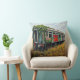 Abandoned and decayed lost spaces throw pillow. An old long abandoned vintage train off the tracks covered in graffiti and ivy while nature reclaims her space.