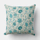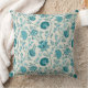 Almofada Jacobean Floral Pattern Teals on Cream