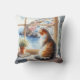 Travesseiro de decorador com a pintura aquosa de um gato sentado numa janela olhando para casas costeiras mediterrânicas coloridas.