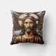 Jesus se posiciona com uma expressão serena, enquadrada por montanhas majestosas e um rio fluindo, incorporando paz e reflexão na beleza da natureza.