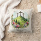 Páscoa travesseiro decorativo com a pintura de Jesus na cruz. O texto personalizável diz, "Ele está levantado como ele disse" Entre em contato comigo para obter assistência com suas personalizações ou para solicitar correspondência ou coordenação adicionais dos produtos Zazzle.