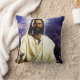 Jesus Travesseiro. Jesus está com a mão aberta a você. E olhando direto para seus olhos e ele tem uma roupa branca e nuvens no fundo do chão. Esta é uma foto antiga do início de 1900 O fundo preto pode ser mudado para o que você quer que ele desfrute as cores que você sente que são excelentes para você