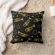 travesseiro na moda preto com um padrão de trompetes e estrelas. Para bandas de latão, bandas marchantes, músicos de jazz, professores de música e muito mais.