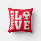 A almofada dos jogadores de futebol Red SOCCER adora. Jogadores de futebol vão adorar esta almofada confortável de futebol! Esta almofada de futebol tem um tema de amor com as palavras SOCCER e AMOR em letras brancas em negrito. Uma bola de futebol serve para a letra O dando a este design um verdadeiro tema de futebol. Na parte de trás desta almofada está o mesmo design do Amor de Futebol mas impresso como um fantástico por todo o impressão. Esta almofada confortável parece excelente em qualquer cadeira e mostrará a todos que você tem um amor ardente pelo futebol. Mais presentes e mercadorias de futebol divertidos disponíveis na loja STAND UP AND CHEER!