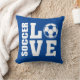 A almofada de jogadores de futebol do Blue SOCCER AMOR. Jogadores de futebol vão adorar esta almofada confortável de futebol! Esta almofada de futebol tem um tema de amor com as palavras SOCCER e AMOR em letras brancas em negrito. Uma bola de futebol serve para a letra O dando a este design um verdadeiro tema de futebol. Na parte de trás desta almofada está o mesmo design do Amor de Futebol mas impresso como um fantástico por todo o impressão. Esta almofada confortável parece excelente em qualquer cadeira e mostrará a todos que você tem um amor ardente pelo futebol. Mais presentes e mercadorias de futebol divertidos disponíveis na loja STAND UP AND CHEER!
